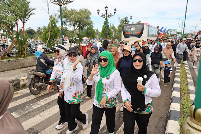BALANGAN- Anggota Dewan Perwakilan Rakyat Daerah (DPRD) Balangan Hj Sri Huriyati Hadi yang juga ketua TP PKK Balangan mengajak masyarakat untuk menerapkan pola hidup sehat melalui kegiatan olahraga, salah satunya jalan santai yang digelar dalam rangka Hari Jadi ke-23 Kabupaten Balangan.